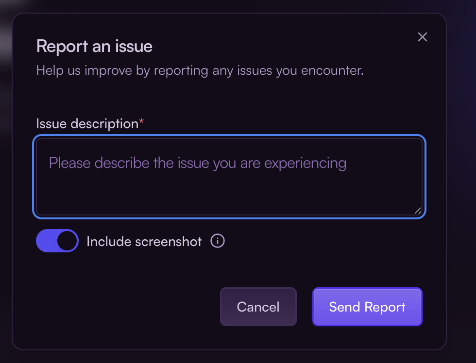 After that, provide us with the details of the issue you are facing and click Send Report.